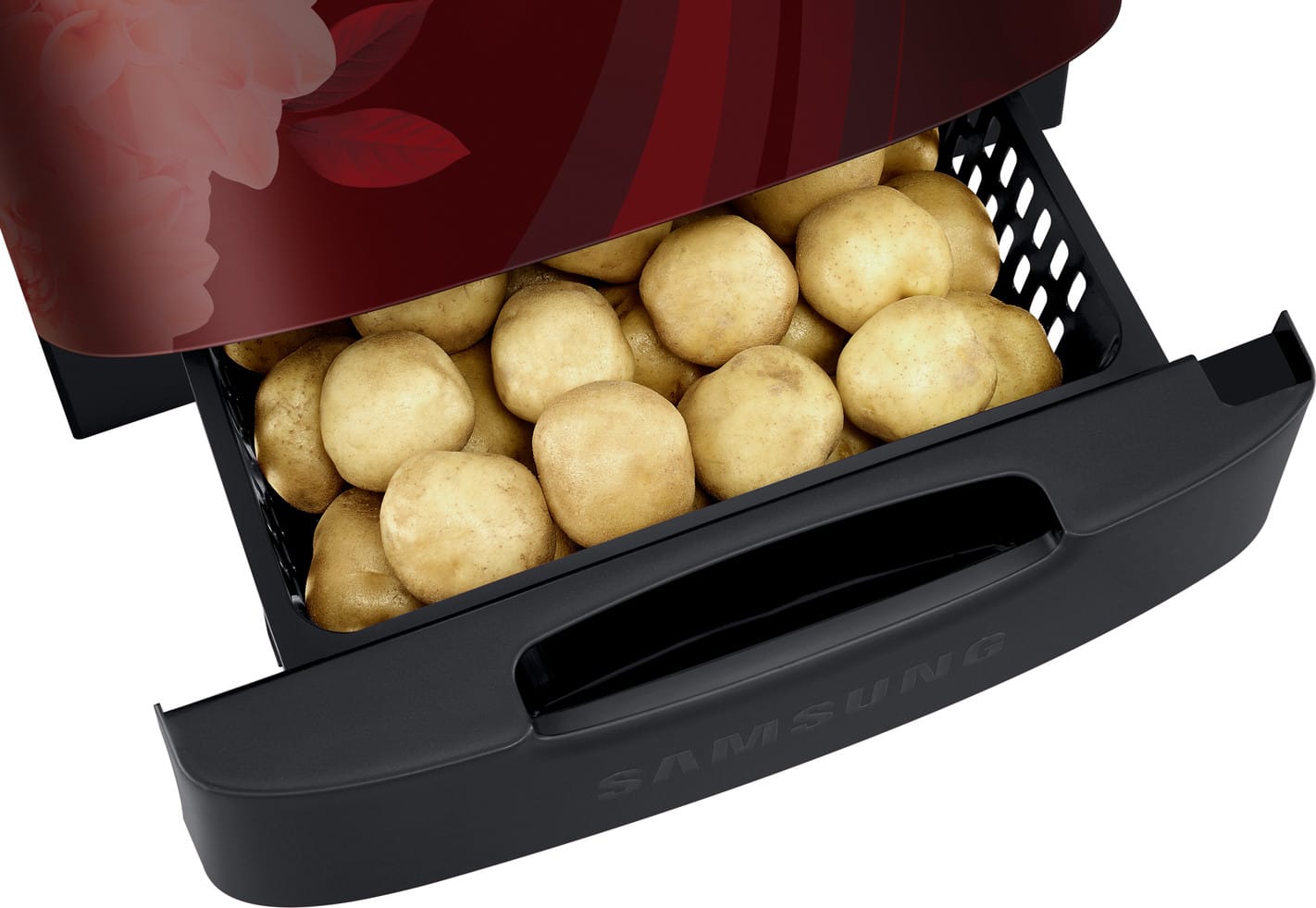 Elegant Design: Stylish red floral pattern finish that enhances kitchen aesthetics